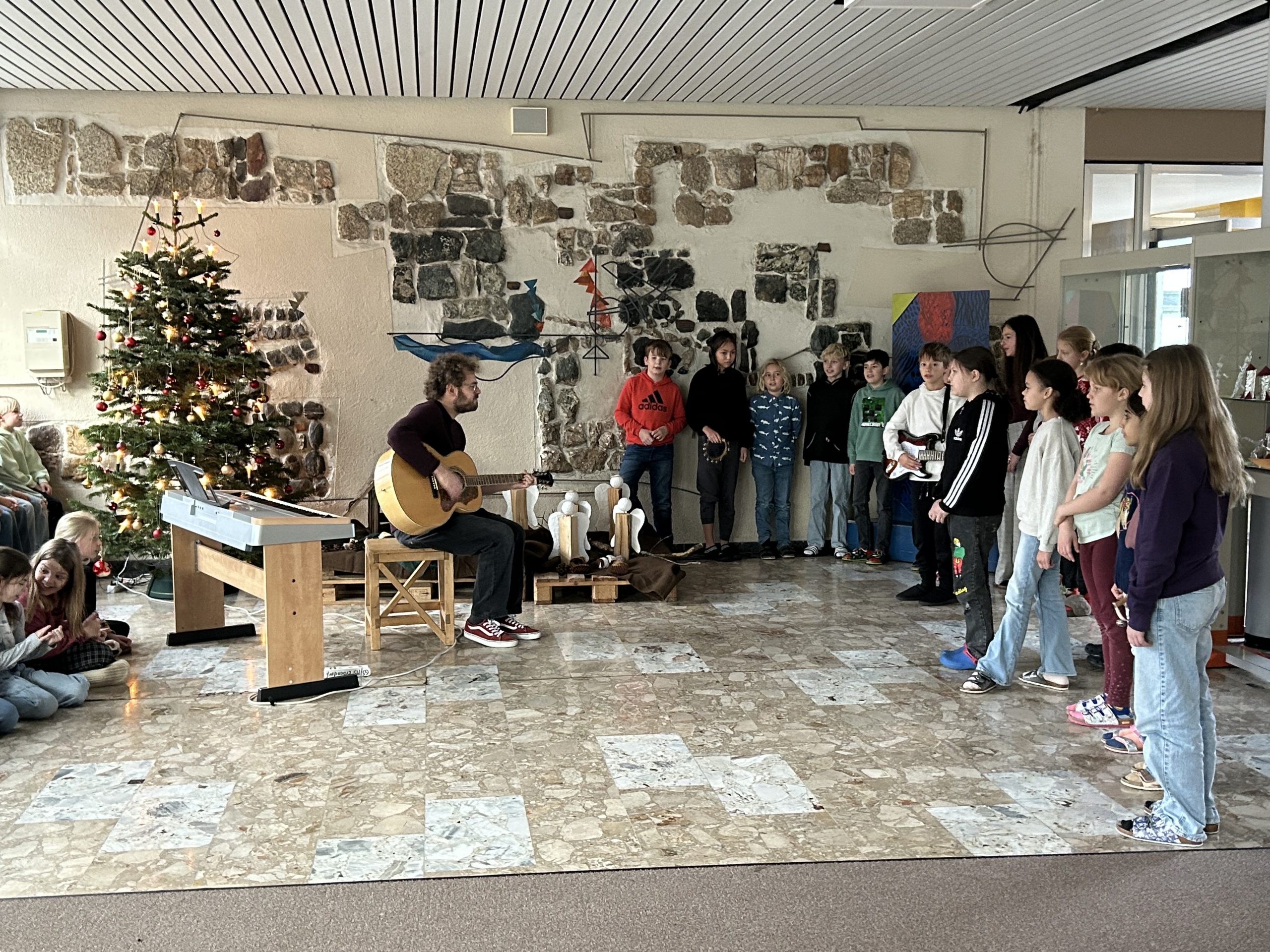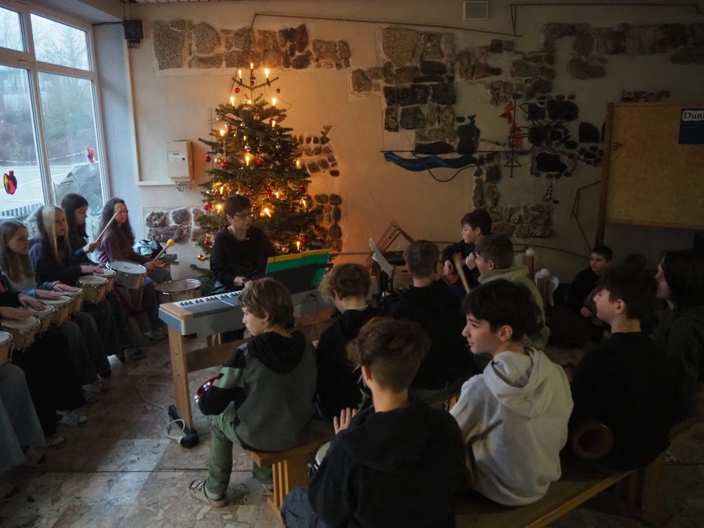 Mit ihren Klassleitungen, Musik- oder Religionslehrkräften hatten sie einen stimmungsvollen und besinnlichen Einstieg in den Tag und die Woche vorbereitet, zu dem sie sich bei Christbaum und Krippe trafen, die adventliche Wartezeit zu gestalten.