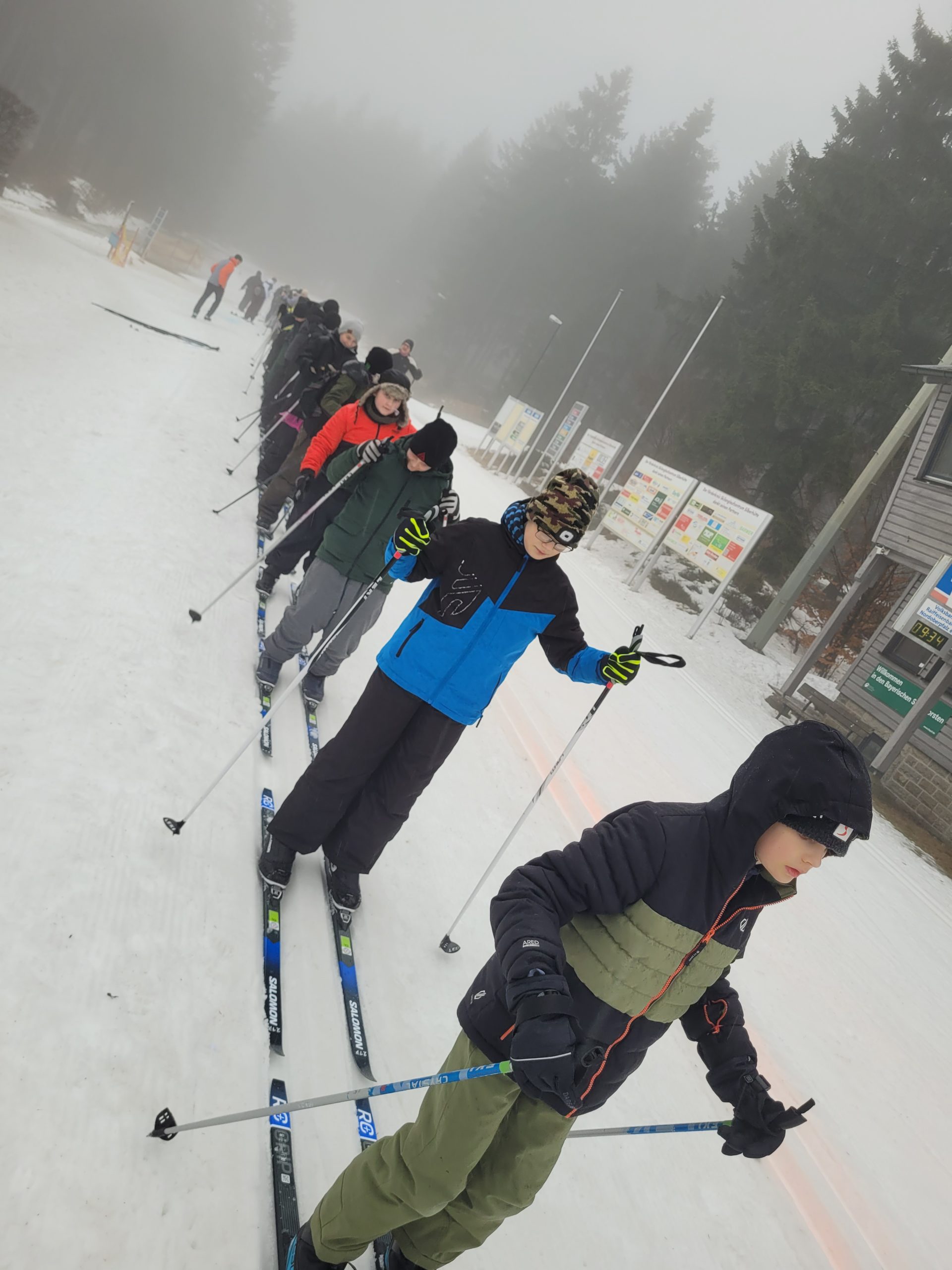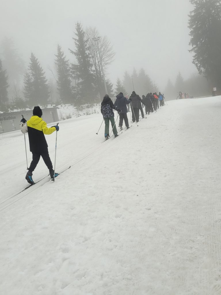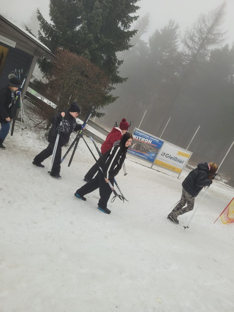 Unterstützt von ihren Lehrkräften sowie von Johanna Grünauer vom Skiclub Waldthurn und dem pensionierten Studienrat der Mittelschule Bernhard Reis als externen Betreuern waren die Schülerinnen und Schüler rasch mit allem benötigten Material ausgerüstet. Nach einem gemeinsamen Aufwärmprogramm wagten sich alle nach kurzer Einweisung auf die Loipe. Schnell gewannen sie an Sicherheit und drehten mit wachsender Begeisterung ihre Runden auf den bestens präparierten Strecken.