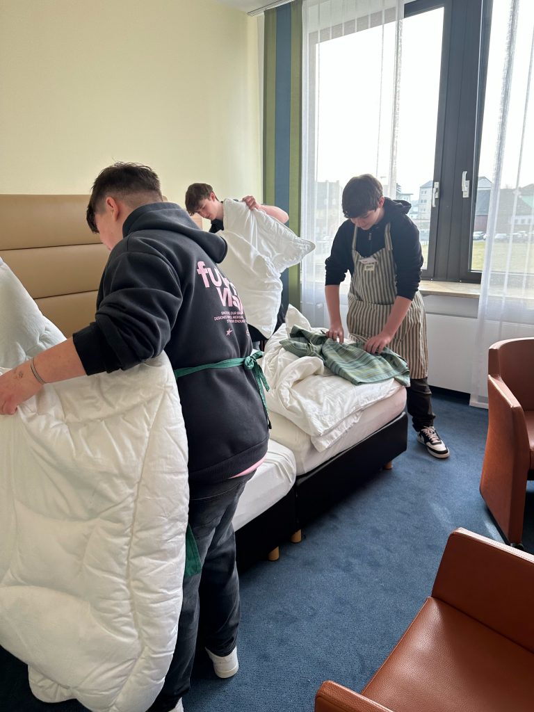 Unter dem Motto „Ein Tag im Hotel“ durfte sich die Ernährung-und-Soziales-Gruppe durch verschiedene Stationen arbeiten.