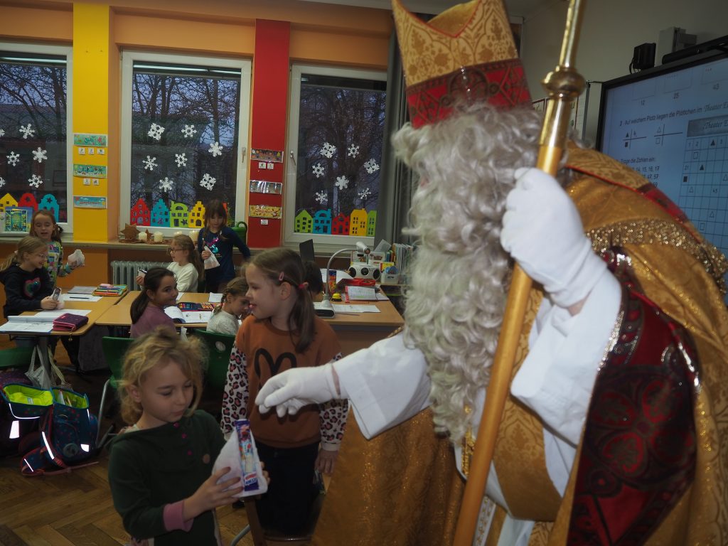 Auch in diesem Jahr besuchte der Heilige Nikolaus die Schule und brachte festliche Stimmung in alle Grundschulklassenzimmer.