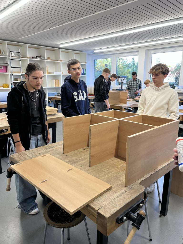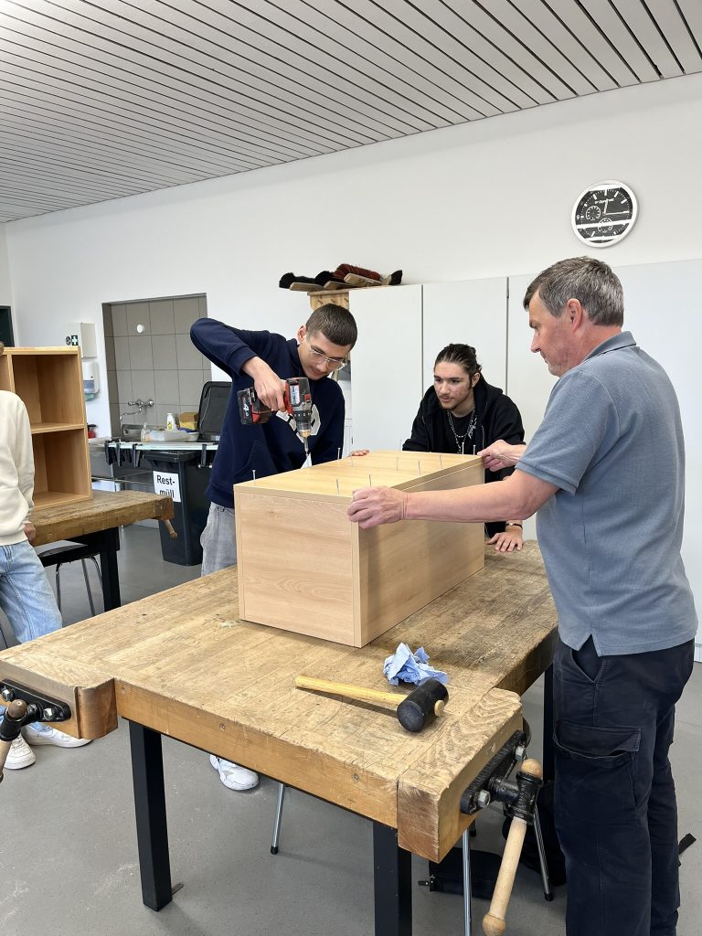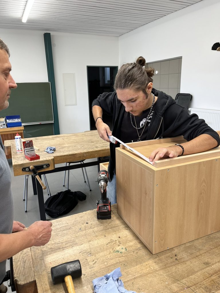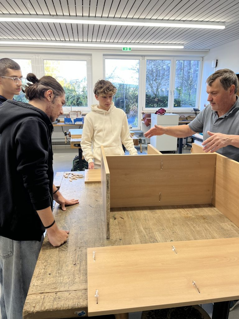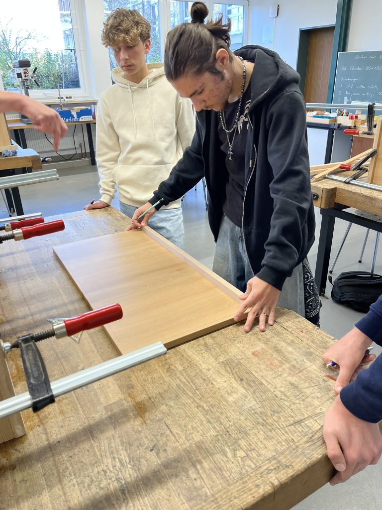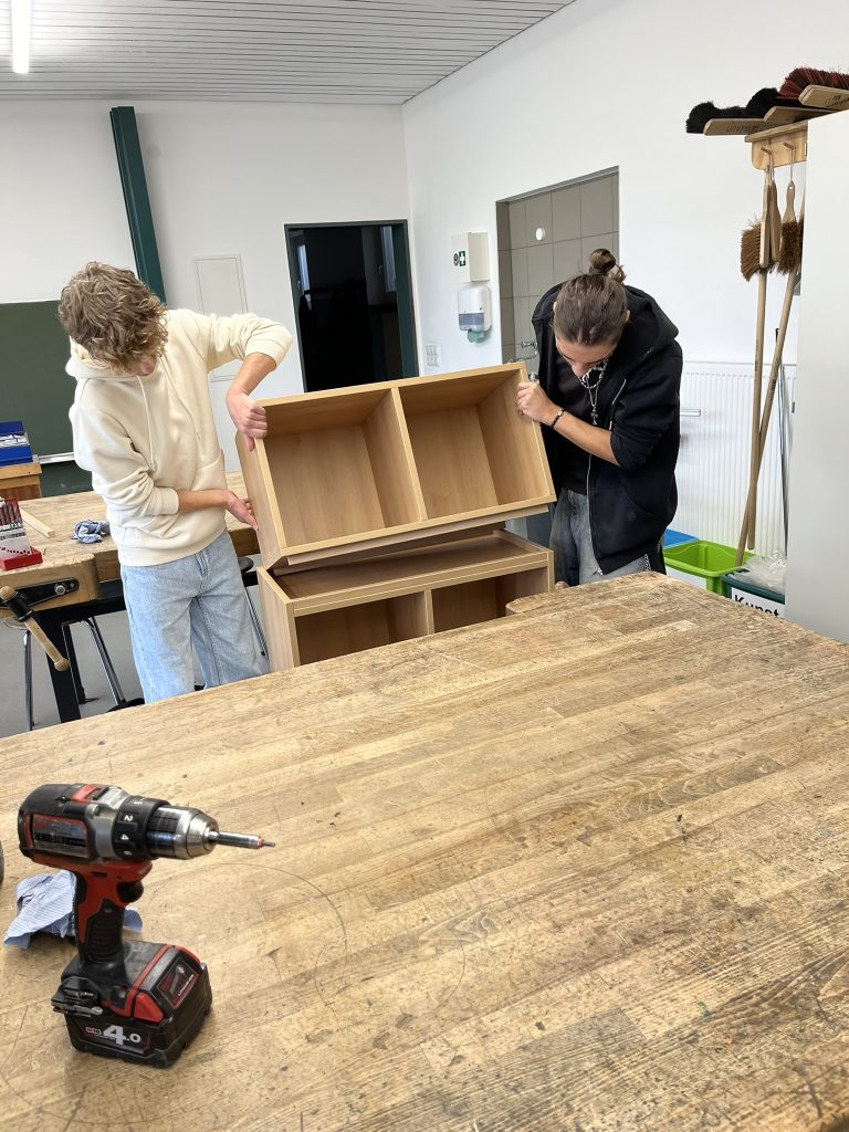 Die Planung begann im Schuljahr 2023/2024. Das Ziel: Regale für die Ausstattung einzelner Klassenzimmer, in denen A4-Ordner und/oder Ablagekörbe Platz finden.